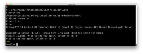just want "Hello, World"? brew install elixirで、ErlangもElixirも入ります。 参考 qiita.com Prerequisite JDK installed on your mac brew install wget Good Bye Elixir, installed via brew brewで入れたelixirは消す % brew uninstall elixir % brew…