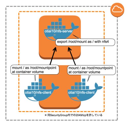 サーバの起動 イメージはこれ → docker-nfs/server at master · otiai10/docker-nfs · GitHub % docker-machine create \ --driver amazonec2 \ --amazonec2-region ap-northeast-1 \ --amazonec2-security-group otiai10-test \ otiai10-server % eval $(do…
